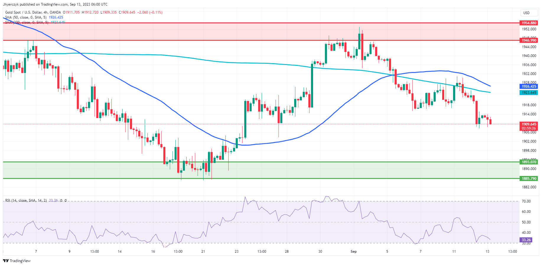 While the price is slightly above the main support area of $1893.07 to $1885.79, it remains considerably lower than the main resistance area of $1946.99 to $1954.88. Although no minor support or resistance levels are noted, the overall market sentiment for Spot Gold appears to be bearish based on these technical indicators.