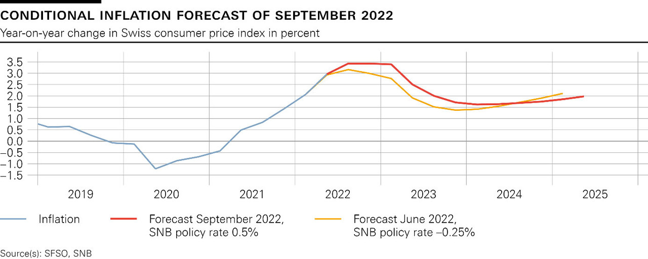 The SNB is tightening its monetary policy further and is raising the SNB policy rate by 0.5 percentage points to 1.5%. In doing so, it is countering the renewed increase in inflationary pressure. It cannot be ruled out that additional rises in the SNB policy rate will be necessary to ensure price stability over the medium term. To provide appropriate monetary conditions, the SNB also remains willing to be active in the foreign exchange market as necessary. For some quarters now, the focus has been on selling foreign currency. The SNB policy rate change applies from tomorrow, 24 March 2023. Banks’ sight deposits